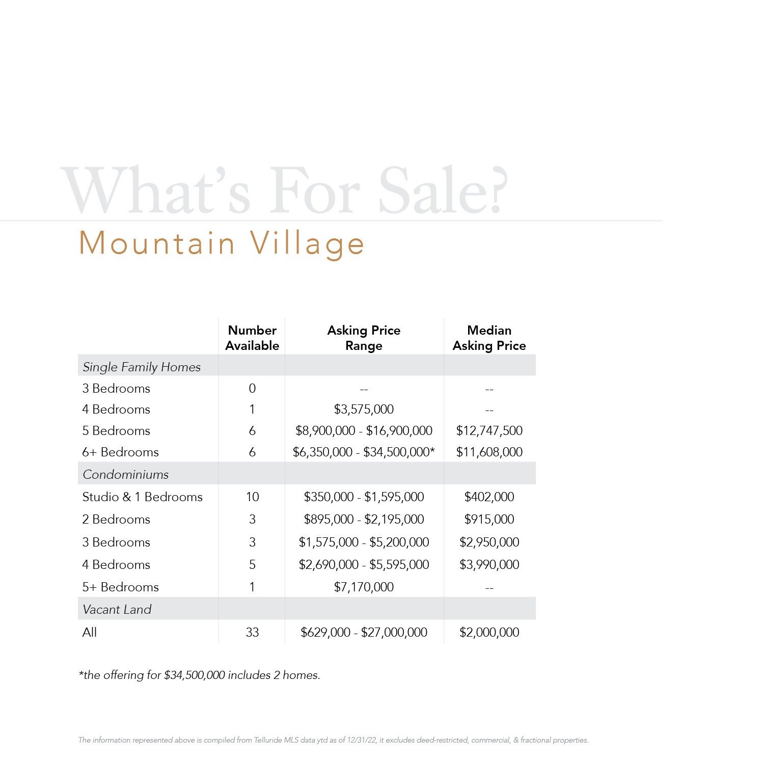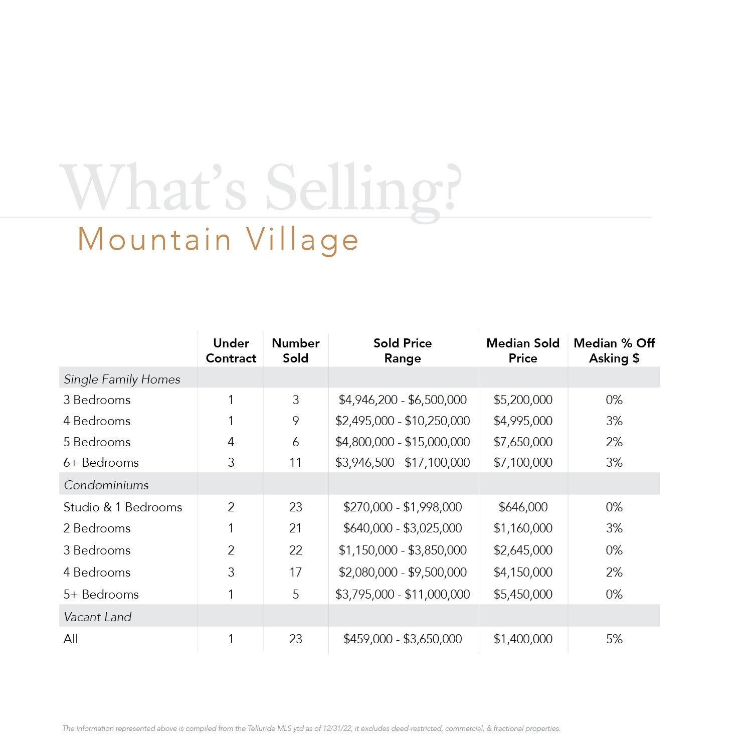 The trend is evident: sophisticated buyers in Telluride want new, high-end product and are willing to pay the necessary premiums for it.